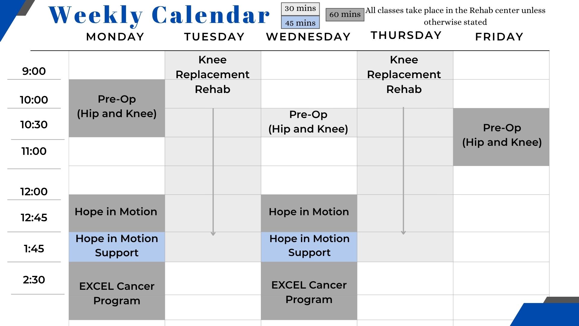 Mondays 2:00pm, Wednesdays at 10:00 am, Fridays 10:00 am